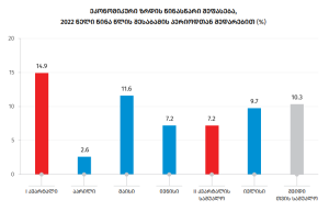 „2022 წლის ივლისში, წინა წლის შესაბამის პერიოდთან შედარებით ზრდის მიმართულებით მნიშვნელოვანი წვლილი შეიტანა შემდეგმა დარგებმა: ტრანსპორტი და დასაწყობება, მშენებლობა, ინფორმაცია და კომუნიკაცია, სამთო-მოპოვებითი მრეწველობა, ვაჭრობა.