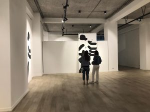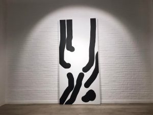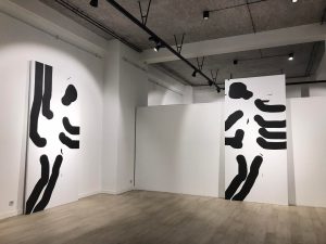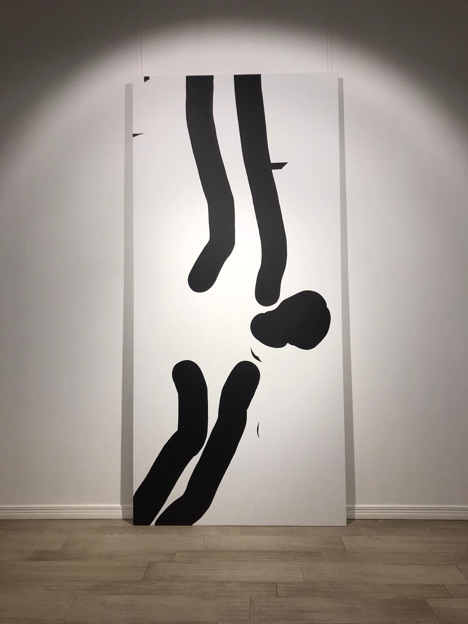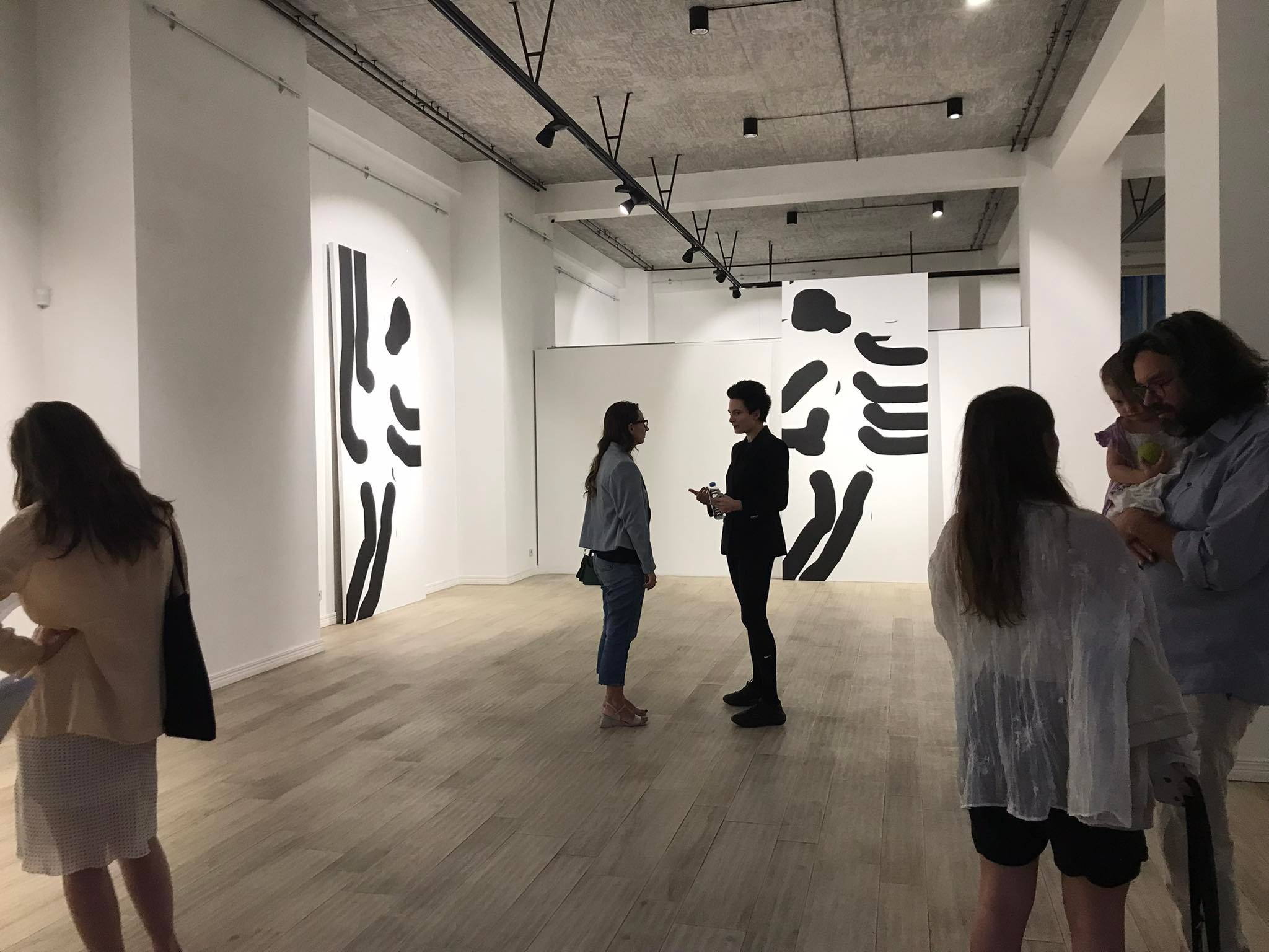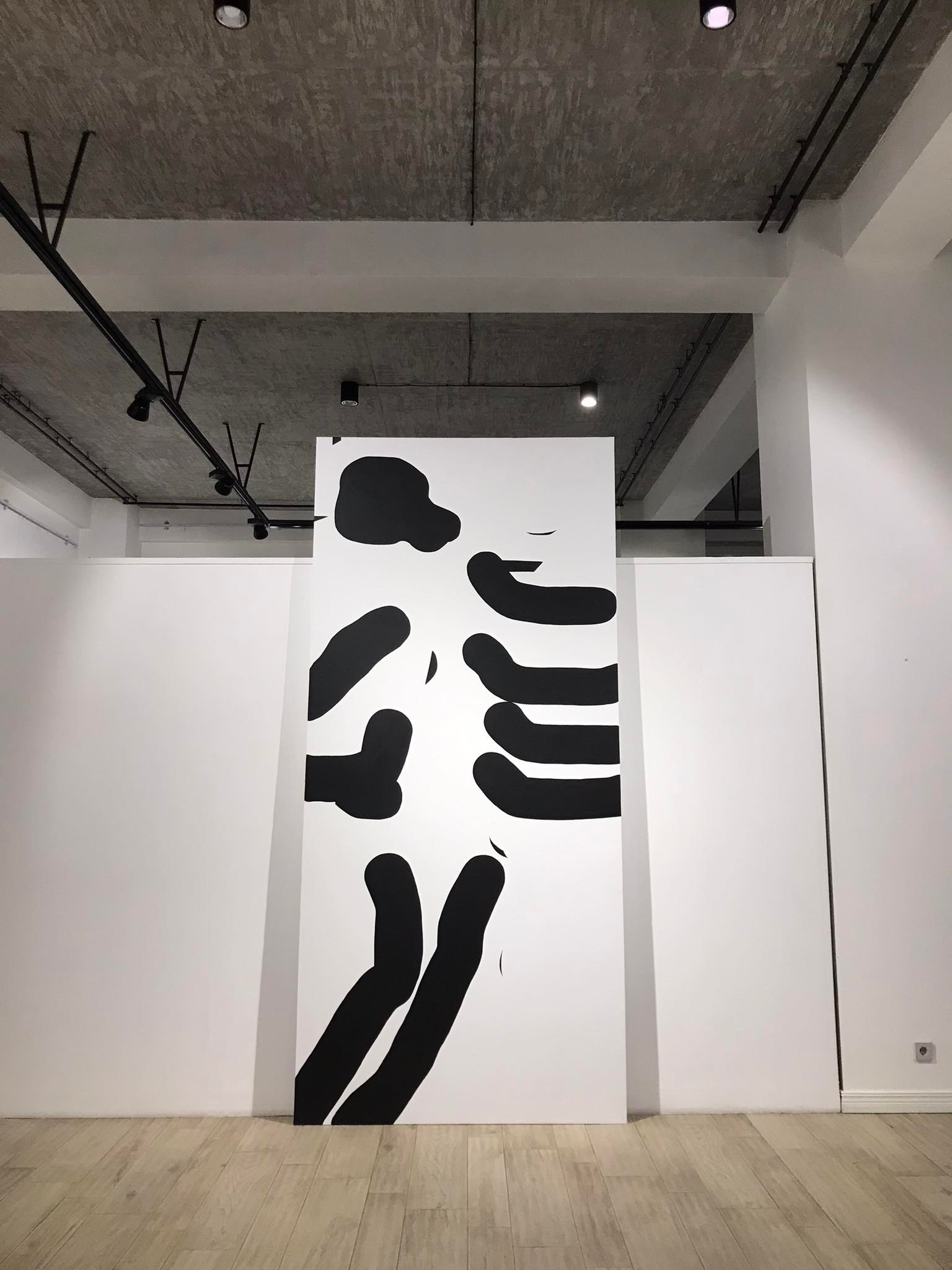 “აქ დახატულია ადამიანთა სხეულები – თავი, ფეხები. ფეხებით დადიხარ, თავი კი ფიქრობს, საით წახვიდე. ადამიანი ჰორიზონტალურ მდგომარეობას მაშინ იღებს, როდესაც სძინავს, ისვენებს, ან მაშინ, როდესაც მკვდარია. ამიტომ, აქ დახატულია ხაზები, რომლებიც გვაგონებს ფეხებს – სადაც ერთი ადამიანი დგას, მეორე კი წევს და ასევე თავები, უფრო ზუსტად, თავის ქალები. ეს ნახატები შესრულებულია “აიფონში“, თითებით, რადგან უკვე რამდენიმე წელია, ძირითადად “აიფონში” ვხატავ. ის ჩემთვის უბის წიგნაკივითაა. იმ პროგრამაში, რომელშიც ვმუშაობ, შემიძლია რაღაც ნაწილი წავშალო, რაღაც ნაწილი კი დავტოვო და ბოლომდე მივიყვანო ნახატი. წაშლილი ელემენტების ფრაგმენტებსაც ვინარჩუნებს. ეს ისეთი სერიაა, რომელიც რაღაც მხრივ ანიმაციური ეფექტით გადმოგვცემს ისტორიას, რომელიც ჩვენთვის ახლოა“, – ამბობს მხატვარი.