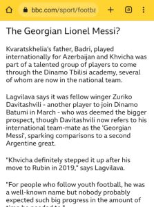 თუმცა, BBC კიდევ ერთ საქვეყნოდ ცნობილ ფეხბურთელთან ავლებს პარალელს და კვარაცხელიასთან მიმართებაში სვამს კითვას – “ქართველი ლიონელ მესი?”