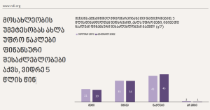 ეროვნული დემოკრატიული ინსტიტუტის (NDI) კვლევის თანახმად, ყოველი მესამე მოქალაქე ამბობს, რომ ბოლო 12 თვის განმავლობაში ხშირად ოჯახისთვის საკვების საყიდლად საჭირო ფული არ ჰქონდა.