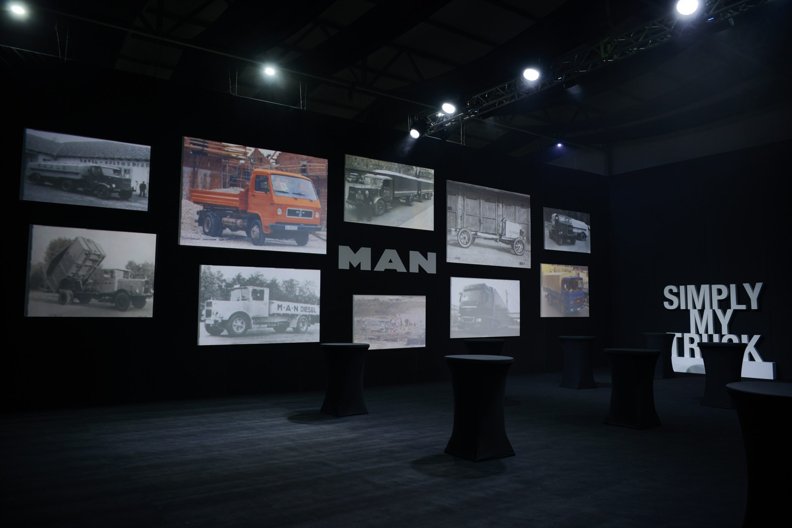 ინდუსტრიული საექსპოზიციო სივრცე რამდენიმე ნაწილად გაიყო. შეიქმნა კონცეპტუალური ზონა, სადაც გერმანული ბრენდის ორსაუკუნოვანი ისტორია და MAN-ის სატვირთოების განვითარების ეტაპები სპეციალური პროექციის დახმარებით აჩვენეს.
