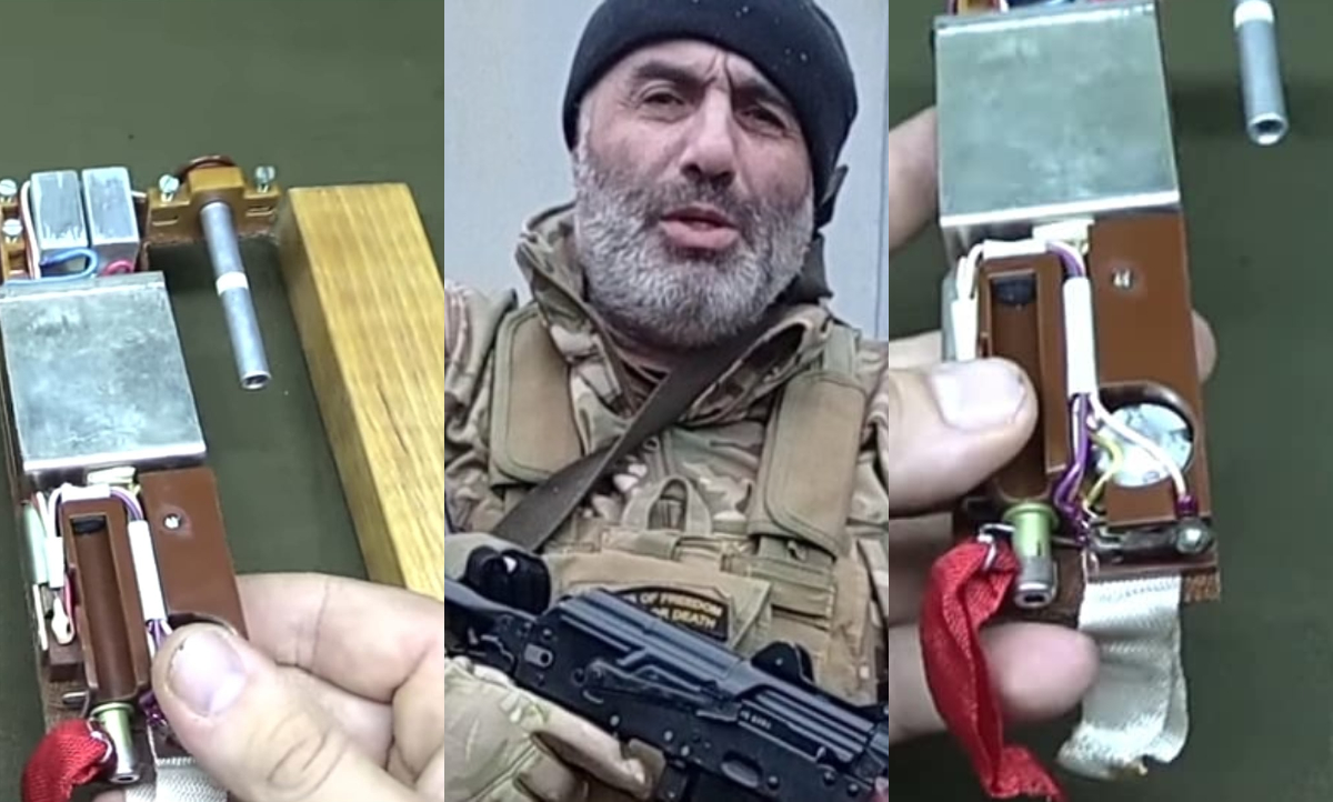 “ესაა ქვეით საწინააღმდეგო ნაღმი МС-4 ( მინა სურპრიზი) , ამ ომში ძალიან ხშირად გამოიყენება, მანამდე სულ 4 ჯერ მაქვს ნანახი და ნასწავლი.სამწუხაროდ ბევრმა ახალ თაობის მეომრებმა არ იციან ეს რაა არის. ფრთხილად ძმებო!!! მოკლედ აქვს სამი რეჟიმი