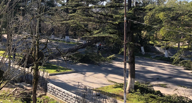 ჩოხატაურში, დუმბაძის ქუჩაზე ქარმა მეოთხე ხე მოგლიჯა.