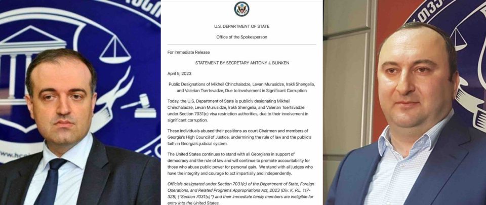“დღეს, ამერიკის სახელმწიფო დეპარტამენტი ახდენს მიხელ ჩინჩალაძის, ლევან მურუსიძის, ირაკლი შენგელიას და ვალერიან ცერცვაძის Საჯარო სანქცირებას, ვიზის აკრძალვის შესახებ 7031(c) წესის საფუძველზე, მნიშვნელოვან კორუფციულ საქმიანობაში მათი ჩართულობის გამო.