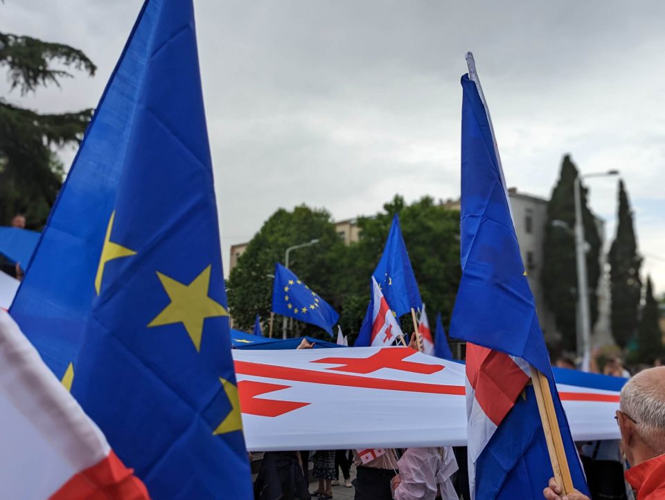 ცნობისთვის, მონაწილეებს საქართველოსა და ევროკავშირის დიდი დროშები ჰქონდათ გამოტანილი,რომელთა მთავარი ლოზუნგი “წინ ევროპისკენ”, “საქართველო ირჩევს ევროპას” იყო, რომელიც მათ პოზიციას, საქართელოს ევროპისკენ სწრაფვას, გამოხატავდა.