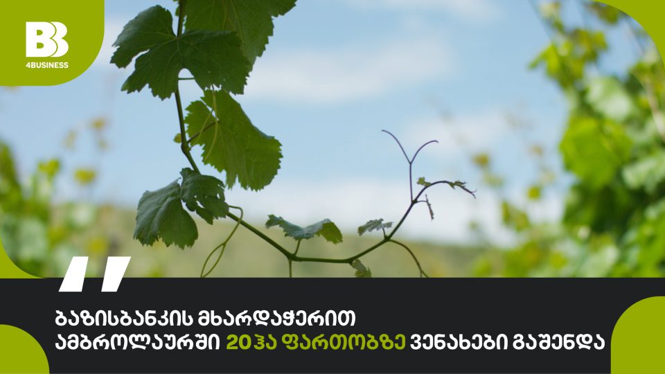 ვენახების გასაშენებლად, ბაზისბანკის მიერ გაწეულმა ფინანსურმა მხარდაჭერამ 1 მილიონი ლარი შეადგინა.