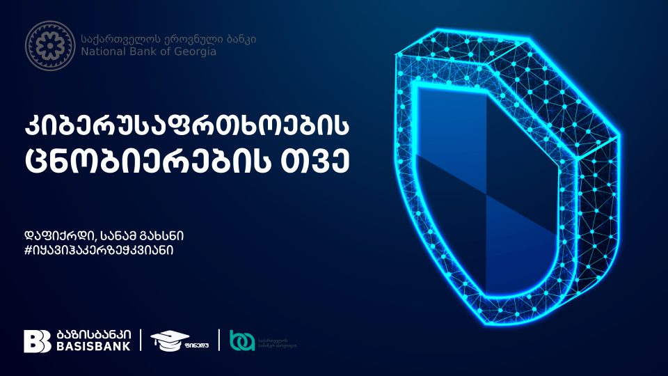 ბაზისბანკი, მესამე წელია, საქართველოს ეროვნული ბანკის და ფინანსური განათლების პორტალი ფინედუს ინიციატივით გამართულ კიბერუსაფრთხოების ცნობიერების ამაღლების საერთაშორისო კამპანიას უერთდება. კიბერუსაფრთხოების ცნობიერების ამაღლების თვე, მსოფლიო მასშტაბით, ოქტომბერში აღინიშნება. წელს კამპანიის სლოგანია – დაფიქრდი, სანამ გახსნი #იყავიჰაკერზეჭკვიანი.