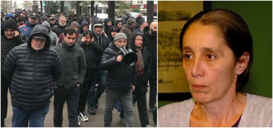 „ალტ-ინფოს წარმომადგენლები“ და მხარდამჭერები ნატა ფერაძის სახლისკენ მიემართებიან.