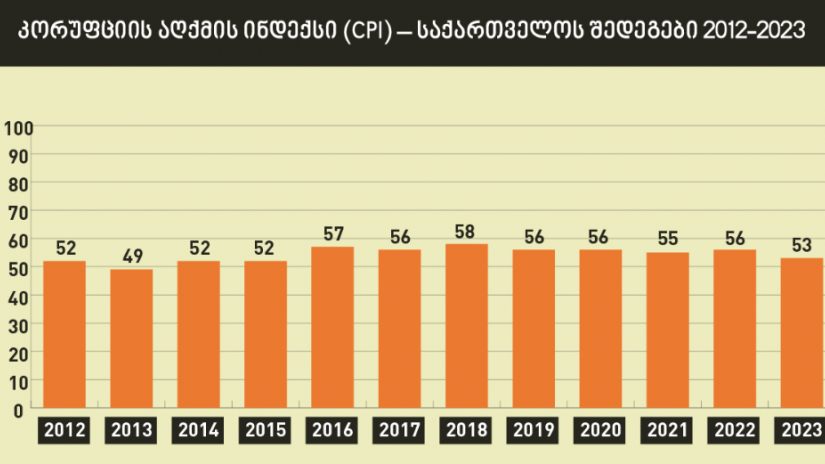 “საერთაშორისო გამჭვირვალობის” მიერ გამოქვეყნებული 2023 წლის “კორუფციის აღქმის ინდექსის” (CPI) მიხედვით, საქართველოს 53 ქულა აქვს, რაც წინა წელთან შედარებით 3 ქულით ნაკლებია. TI-ის თქმით, მიუხედავად იმისა, რომ საქართველო კვლავაც რეგიონში წამყვან პოზიციებზეა, მას ასეთი დაბალი ქულა 2015 წლის შემდეგ არ ჰქონია.