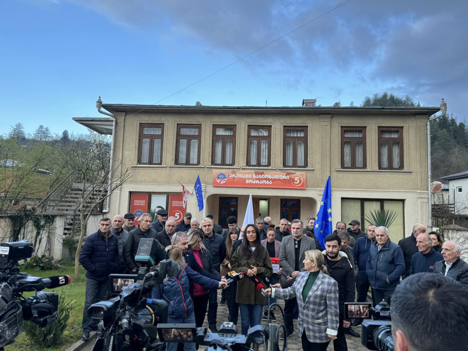 ადგილზე იმყოფებიან სოფო ჯაფარიძე, წალენჯიხის მერი გია ხარჩილავა, ირაკლი ნადირაძე და პარტიის სხვა წარმომადგენლები.