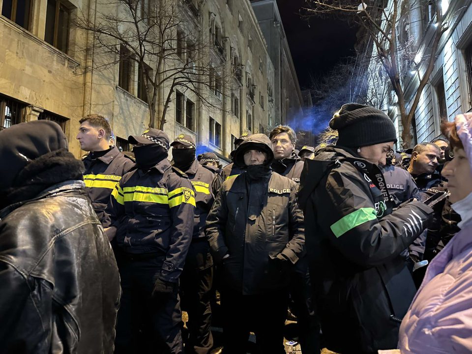 „აქციის მონაწილეები პოლიციის მიმართულებით ისროდნენ შუშის ბოთლებს, ქვებს, რკინის საგნებსა და პიროტექნიკას. უწყების განმარტებით, აღნიშნული ძალადობრივი ქმედებების აღკვეთის მიზნით, შინაგან საქმეთა სამინისტრომ გასული ღამის განმავლობაში არაერთხელ გამოიყენა კანონით დაშვებული სპეციალური საშუალებები.