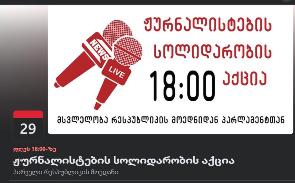 ღეს 18:00 საათზე ჟურნალისტთა სოლიდარობის აქცია დაანონსდა, რომლის ორგანიზატორი “წინაპრებია”.