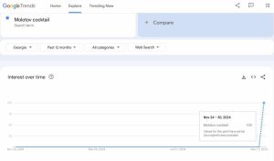 “საქართველოში ბოლო 24 საათში გაზრდილია გუგლის საძიებო სისტემაში სხვადასხვა სახით ე.წ. მოლოტოვის კოქტეილის ძიება.” – წერენ სოციალურ ქსელში.