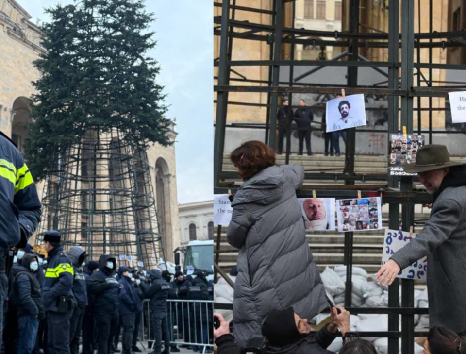 მედიის წარმომადგენლებმა, ნაძვის ხეზე, რომელსაც პარლამენტის წინ ამონტაჟებენ, საპროტესტო აქციებზე დაშავებული და ნაცემი ადამიანების ფოტოები ჩამოკიდეს.