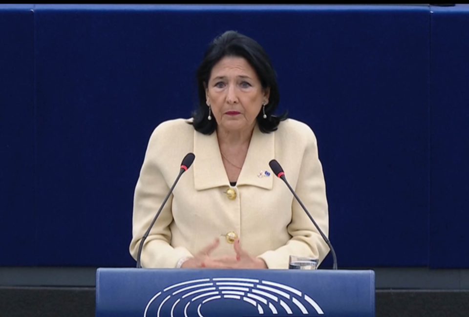 “მადლობა, რომ მომეცით საშუალება ამ გადამწყვეტ პერიოდში საქართველოსთვის ვიმყოფებოდე აქ და მქონდეს საშუალება, მოგაწოდოთ ინფორმაცია იმასთან დაკავშირებით, რა ხდება ჩემს ქვეყანაში დღესდღეობით. მადლობა მინდა გადავუხადო ევროპარლამენტის დელეგაციას, რომლებიც რამდენიმე დღის წინ საქართველოში იმყოფებოდნენ, ეს ძალიან მნიშვნელოვანია ქვეყნისთვის” – განაცხადა საქართველოს პრეზიდენტმა ევროპარლამენტში, სიტყვით გამოსვლის დროს.