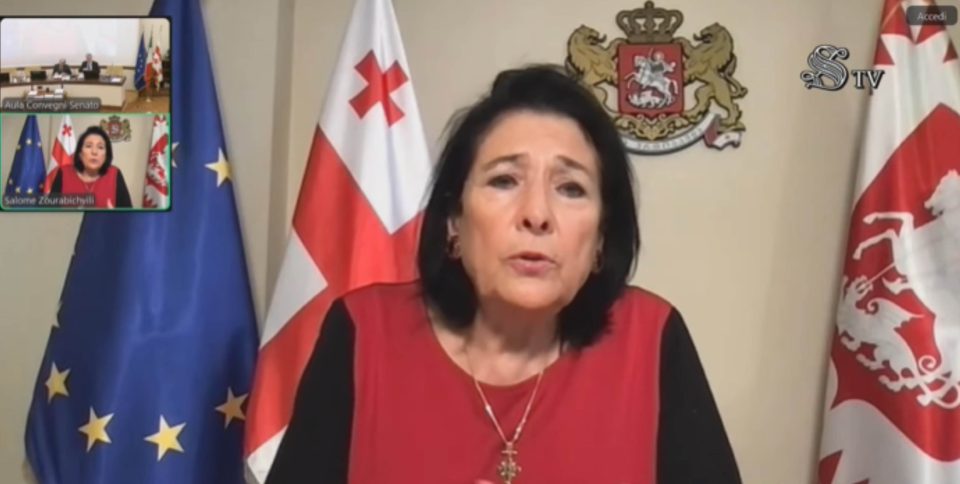 საქართველოს პრეზიდენტმა, სალომე ზურაბიშვილმა იტალიის პარლამენტში გაერთიანებული კომიტეტების სხდომას მიმართა და ისაუბრა საქართველოში მიმდინარე პროცესებზე – მან მოუწოდა დასავლელ პარტნიორებს, რომ ნაცვლად მმართველ პარტიაზე მოწოდებისა, დაუბრუნდნენ ევროპულ გზას, მხარი დაუჭირონ საქართველოს მოქალაქეების მოთხოვნას ახალი არჩევნების შესახებ.