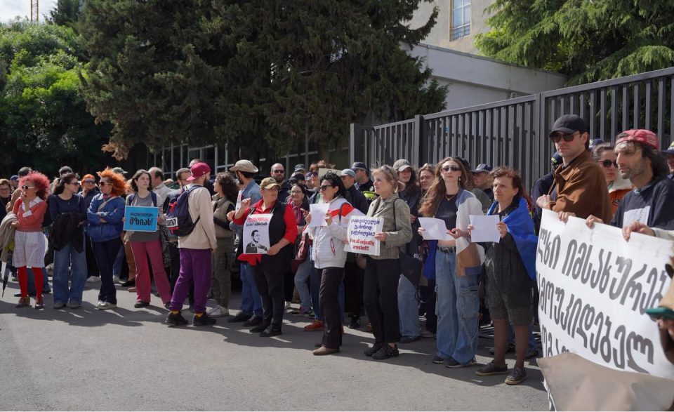 “საზოგადოებრივი მაუწყებლის” შენობასთან აქციების დროს დაკავებული პატიმრების ოჯახის წევრები საპროტესტო აქციას მართავენ.