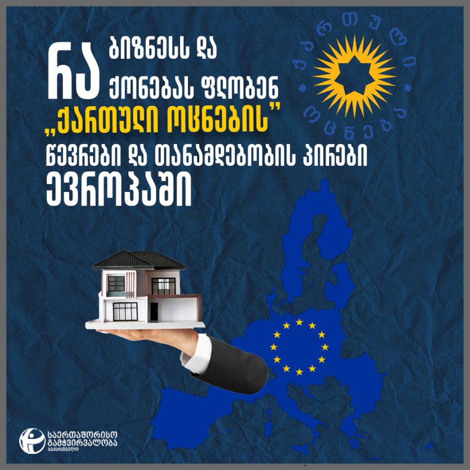 ეს ფაქტი მარტივად ჩანს საჯაროდ ხელმისაწვდომი წყაროებიდანაც. „საერთაშორისო გამჭვირვალობა – საქართველომ“ მოიძია 18 პირის შესახებ ინფორმაცია (ქართული ოცნების მოქმედი და ყოფილი წევრები, თანამდებობის პირები და პარტიასთან დაახლოებული ბიზნესმენები) ვინც ფლობს კომპანიებს ან უძრავ ქონებას ევროკავშირის ქვეყნებში: საფრანგეთი, გერმანია, ნიდერლანდები, ჩეხეთი, ესპანეთი, დანია, სლოვაკეთი, უნგრეთი, საბერძნეთი, კვიპროსი.