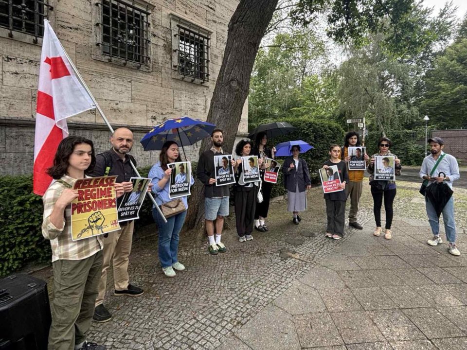ბერლინში, საქართველოს საელჩოსთან მზია ამაღლობელის დასკვნითი პროცესის პარალელურად აქცია მიმდინარეობს.