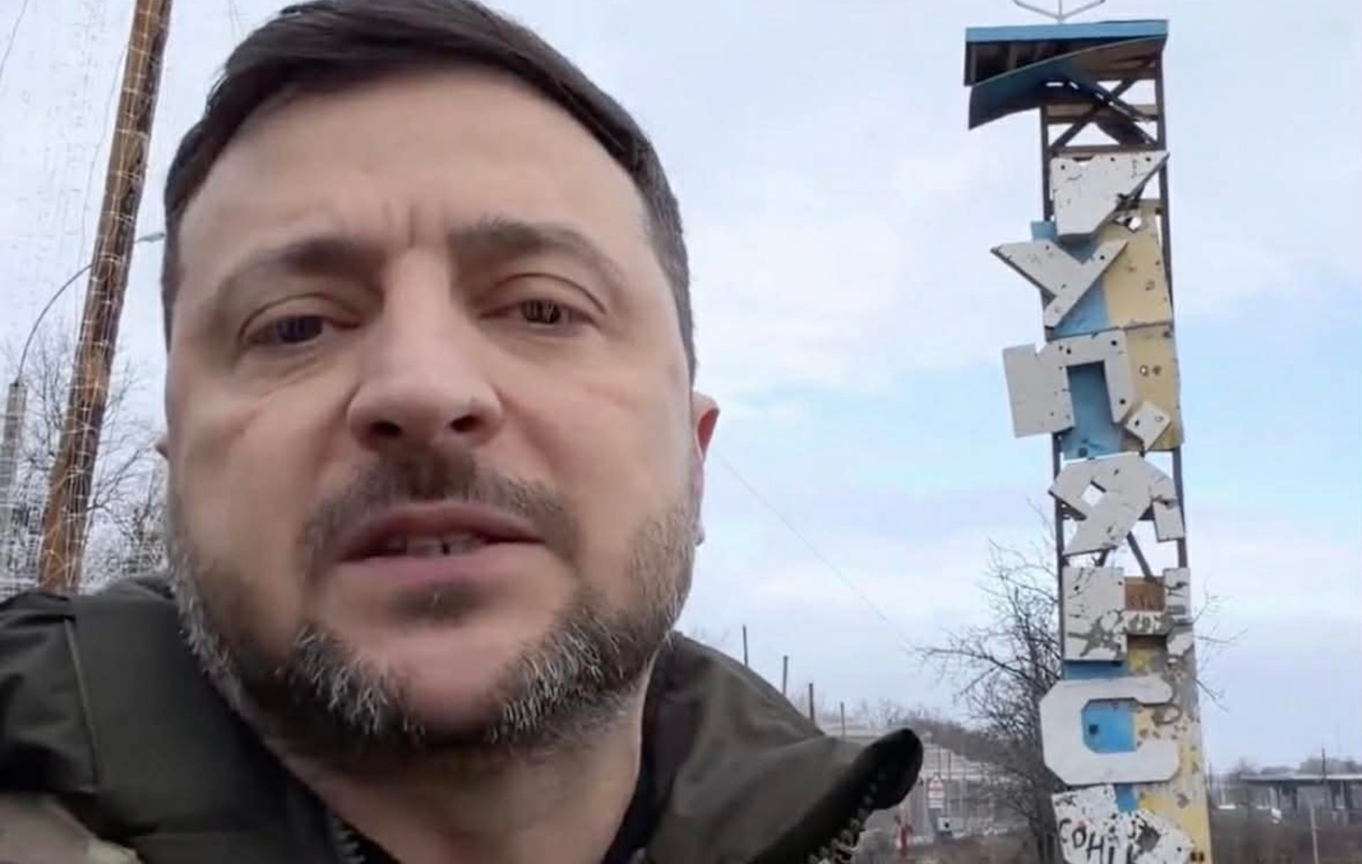 უკრაინის პრეზიდენტი ვოლოდიმირ ზელენსკი კუპიანსკის ოლქში ჩავიდა და ვიდეო ჩაწერა ქალაქის შესასვლელში.