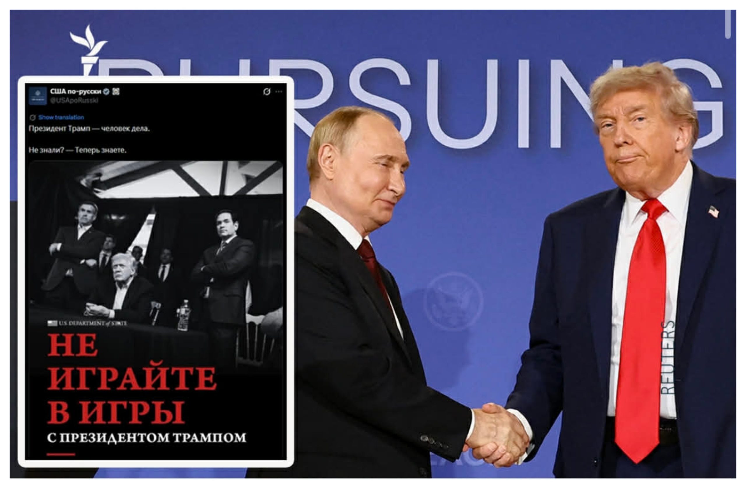 ამერიკის შეერთებული შტატების სახელმწიფო დეპარტამენტის X-ის რუსულენოვან ანგარიშზე პოსტი გამოქვეყნდა, რომელშიც რუსულ ენაზე წერია: „ნუ ითამაშებთ თამაშებს პრეზიდენტ ტრამპთან“