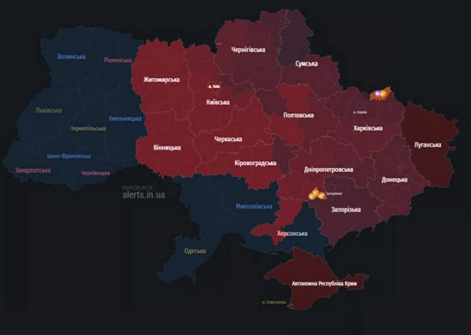 უკრაინის მთელ ტერიტორიაზე საჰაერო თავდასხმის განგაში გამოცხადდა – საჰაერო ძალებმა გაფრთხილება გაავრცელა, რომ სხვადასხვა რეგიონის ცაზე ფრთოსანი რაკეტების რამდენიმე ჯგუფი, დასავლეთის და სამხრეთ-დასავლეთის მიმართულებით მოძრაობს სუმისა და პოლტავას რეგიონების გავლით.