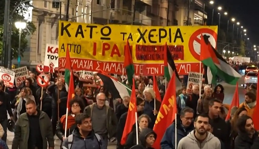 ათენში ახლო აღმოსავლეთში მიმდინარე კონფლიქტის წინააღმდეგ საპროტესტო აქცია გაიმართა.