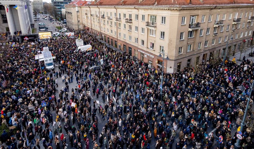 მედიის ცნობით, ლიეტუვის დედაქალაქში, პარლამენტის შენობასთან, დამოუკიდებლობის მოედანზე, ათი ათასი ადამიანი შეიკრიბა.