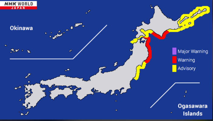 იაპონური მედიის თანახმად, მოსალოდნელია სამ მეტრამდე სიმაღლის ტალღები. ივატეს პრეფექტურაში, კუჯის პორტს 80-სანტიმეტრიანი ცუნამი დაატყდა თავს და წყლის დონე კვლავ იზრდება. მიწისძვრის გამო ტოკიოს სადგურსა და შინ-აომორის სადგურს შორის სარკინიგზო მოძრაობა შეჩერებულია.